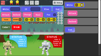O objetivo do jogador é programar seu robô para que esse vença derrote o robô inimigo, para isso podem ser usados blocos que são arrastados para a área de programação. Um robô é considerado derrotado quando seus pontos de vida chegam a zero.